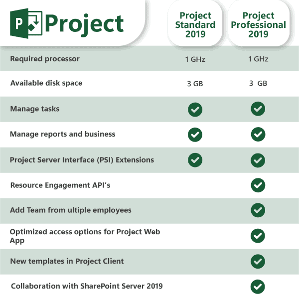 Work with others to start and implement successful projects in no time. Includes all of the features of Microsoft Project Standard plus collaboration in resource management, SharePoint task synchronization, timesheet submission, and more. Microsoft Project Professional 2019 offers flexible features that will help you plan projects, track status, and collaborate with others from virtually anywhere. The application offers real-time communication and instant messaging, activated directly in your project plan via Skype for Business, and consolidates all potential project resources in a single view.